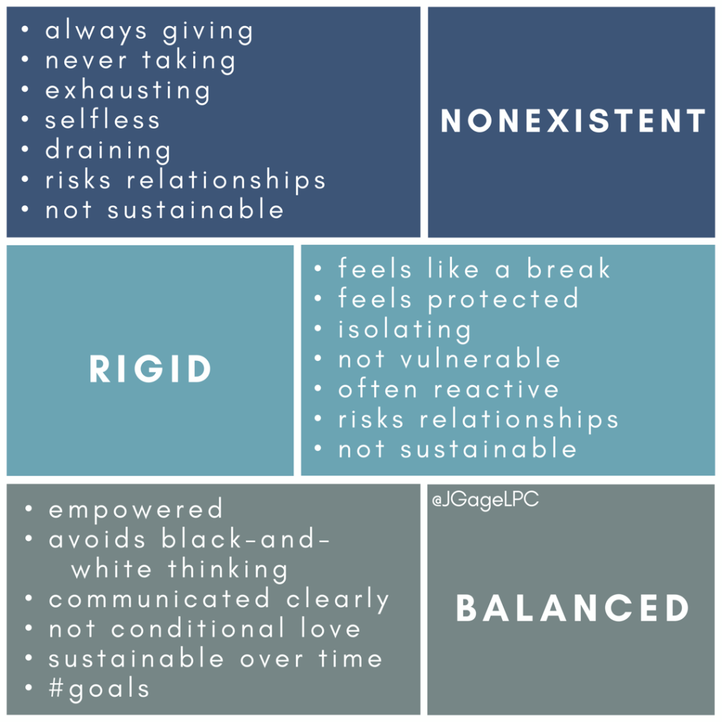Can you think of times you’ve stood on the pitcher’s mound using each of the three types of boundaries? Where are you now? What steps can you take toward being more balanced? It’s helpful to identify which type of boundaries you most consistently hold, with the goal of balance in mind. You can do it!