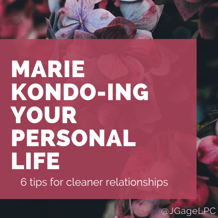 Have you taken inventory and tried to clean house in your personal life? Share these ideas with a friend and try Marie Kondo-ing things for a while. PS: counseling is a great place to come up with a game plan!