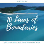 This is a follow-up to my Boundaries post from April 2019 where I discussed the three types of boundaries and their functions in our lives. It started some great conversations with clients and other counselors, so if you haven’t read it, start there and then come back to this post. Today, I want to expand on the earlier post by highlighting the 10 Laws of Boundaries as outlined in Boundaries (Cloud & Townshend, 2004).